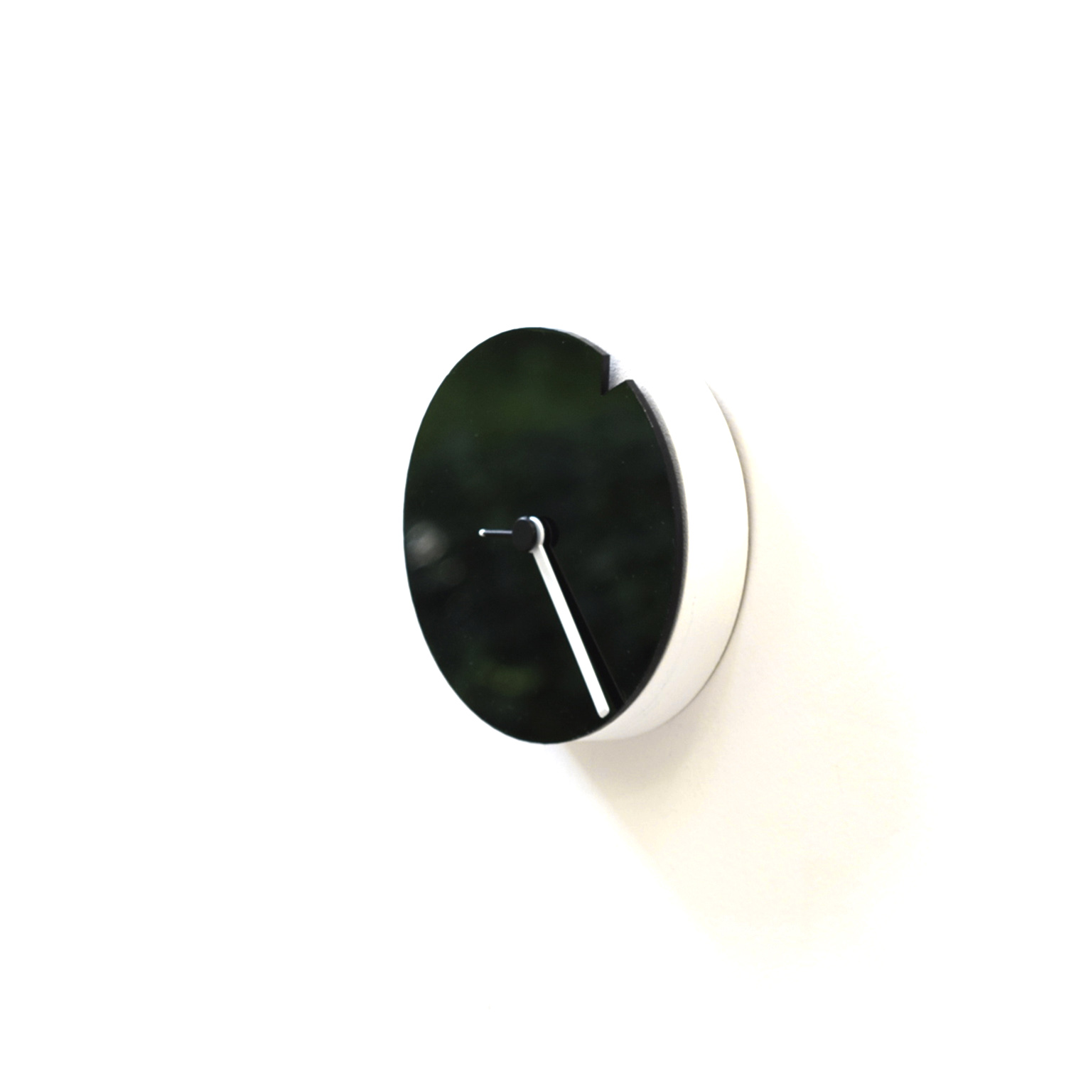 The minimalist - tiny white wood + black acrylic minimalist clock with rotating dial