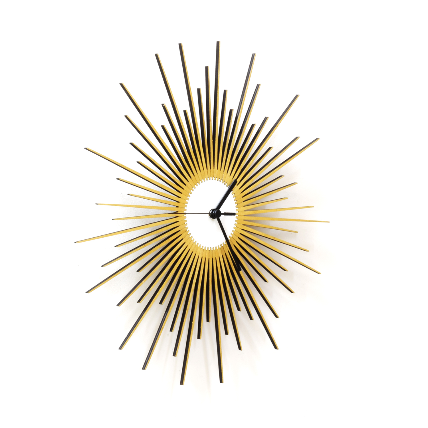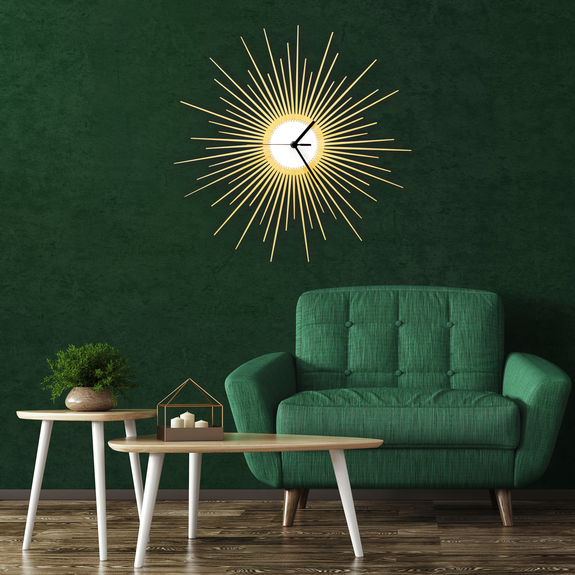 Big Bang gold is a sunburst wall clock with hand painted golden surface and unique dial layout.