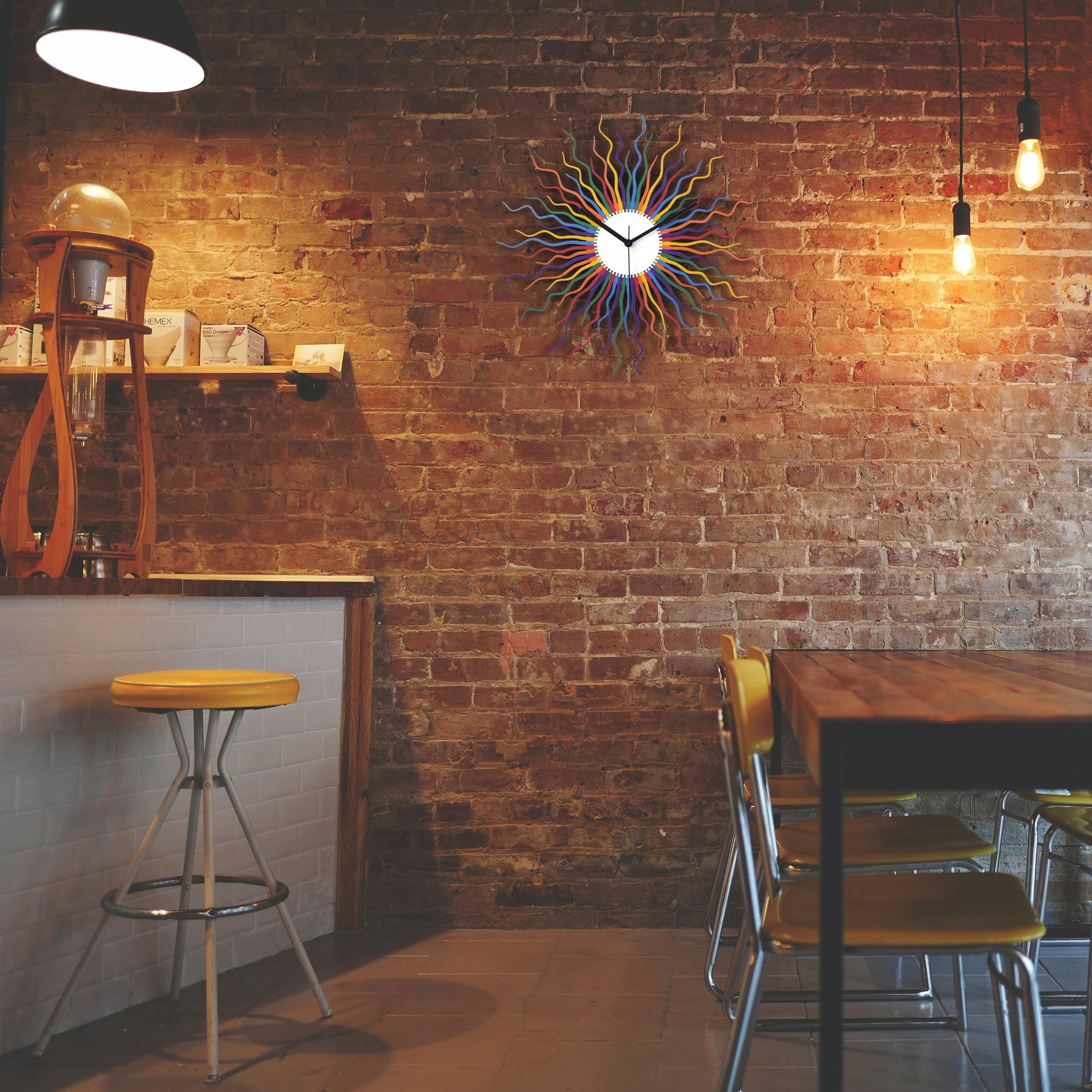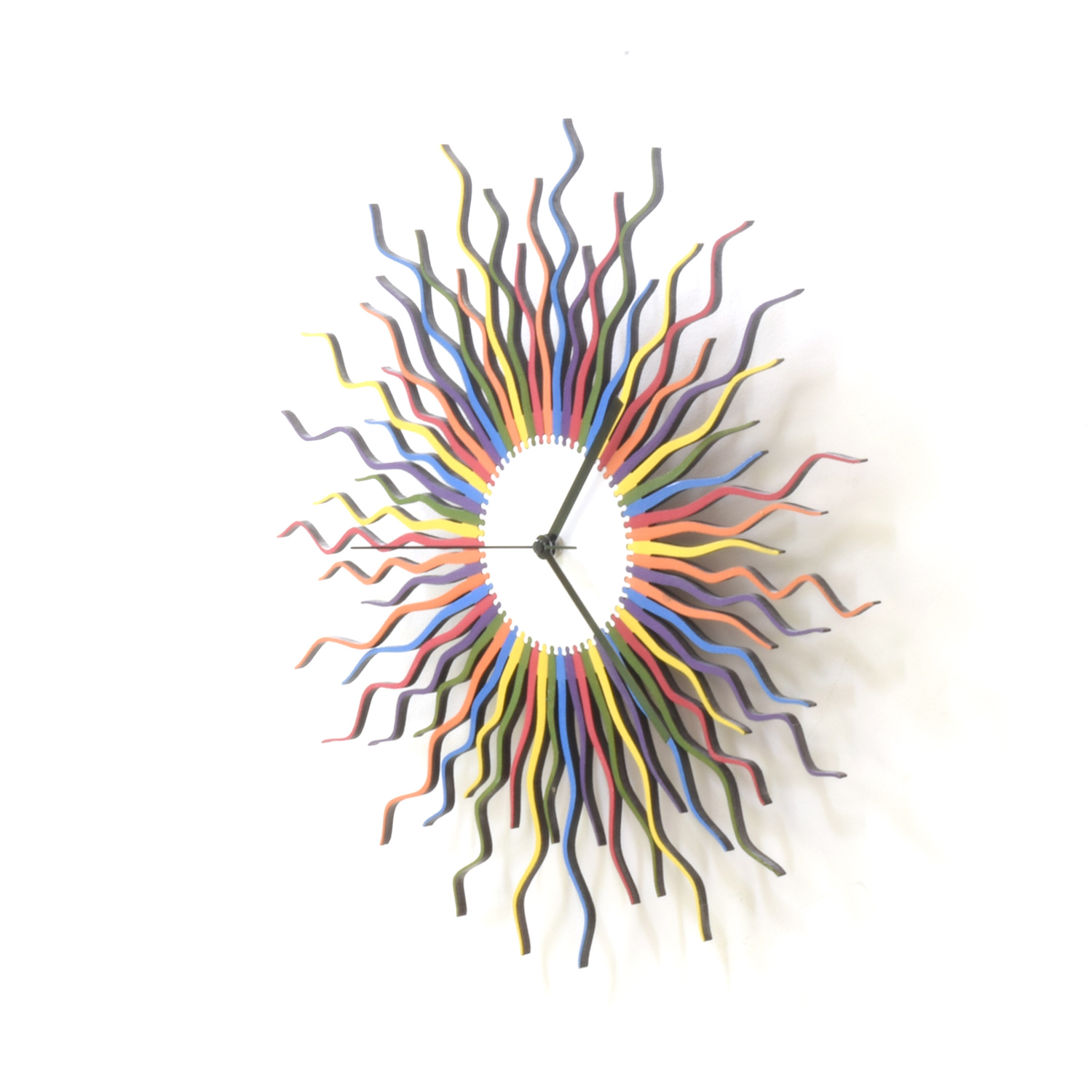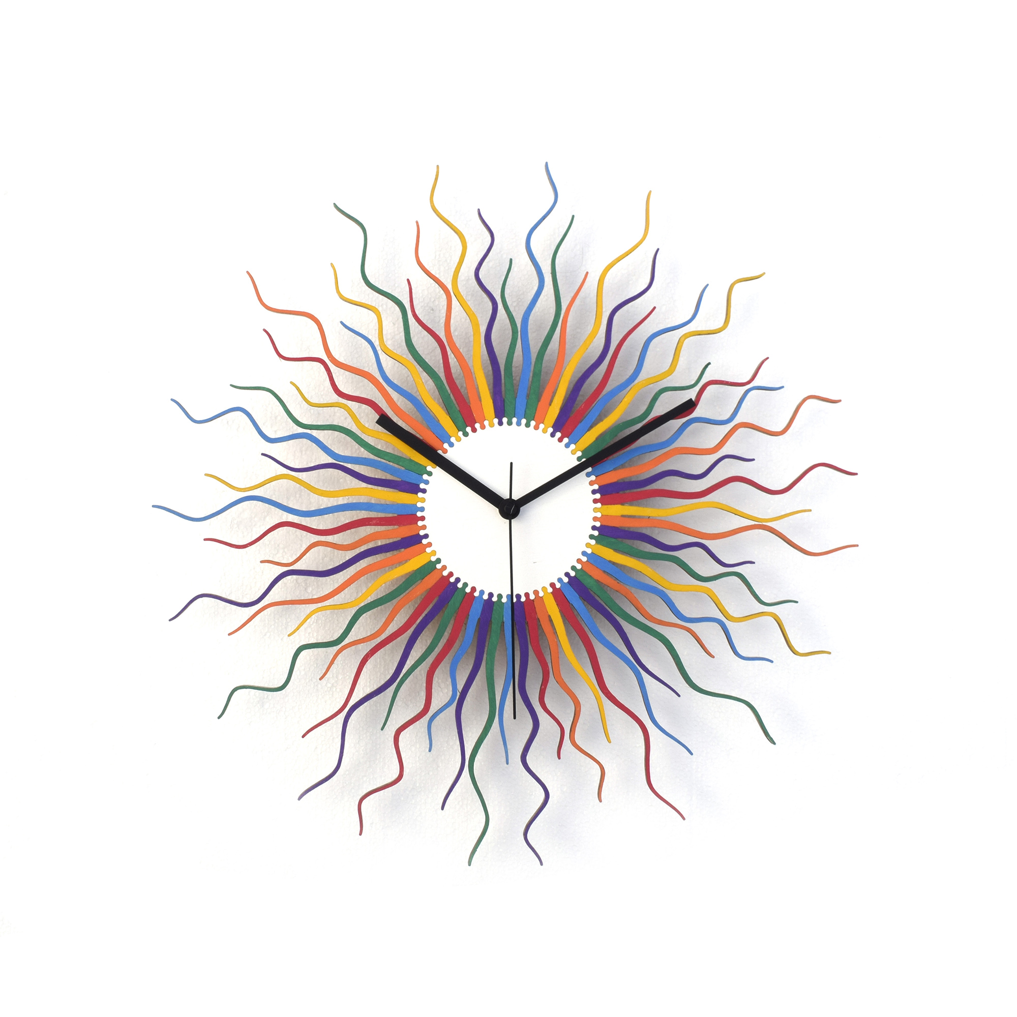 Medusa rainbow - contemporary multicolor wooden wall clock with sunburst shape, a piece of wall art