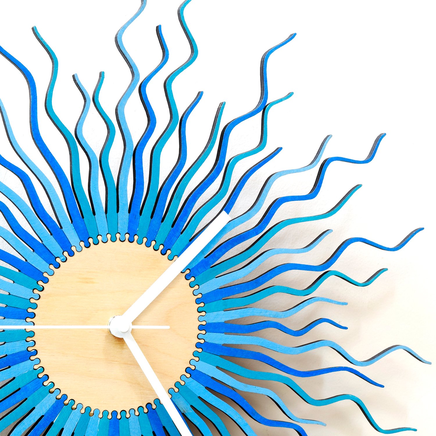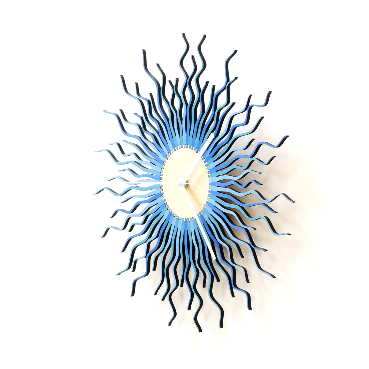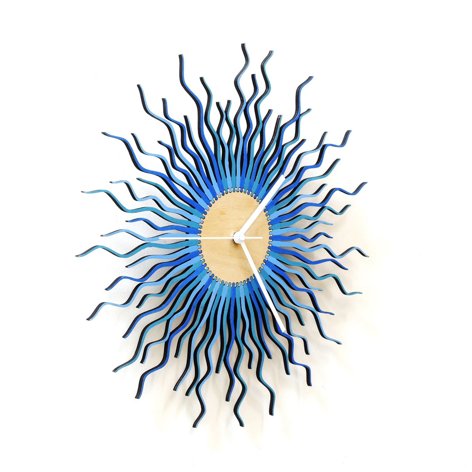 - Manufacturing process: laser cutting, sanding, hand painting, gluing, manual assembly. Owing to the manual distribution of the spikes none of these clocks are identical.