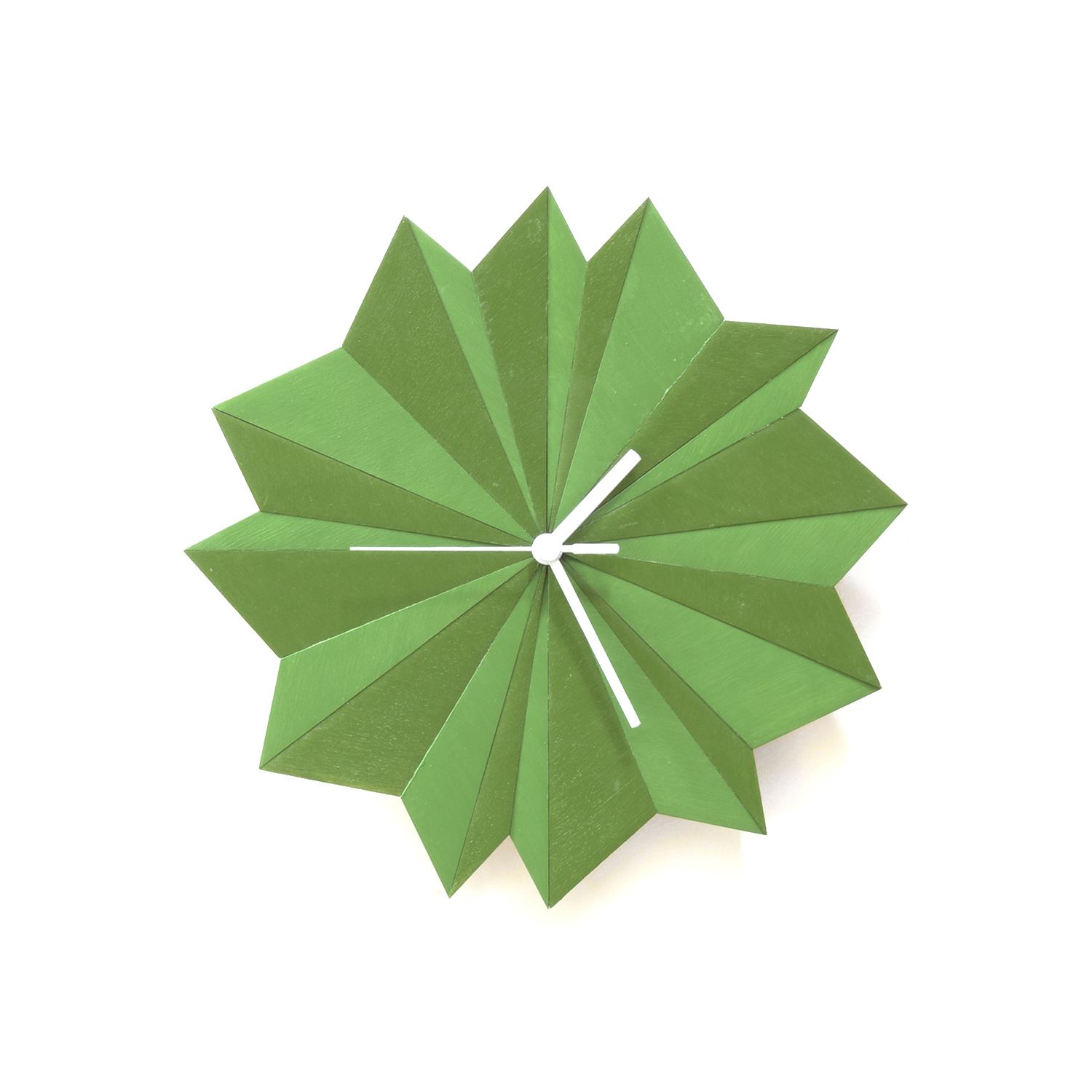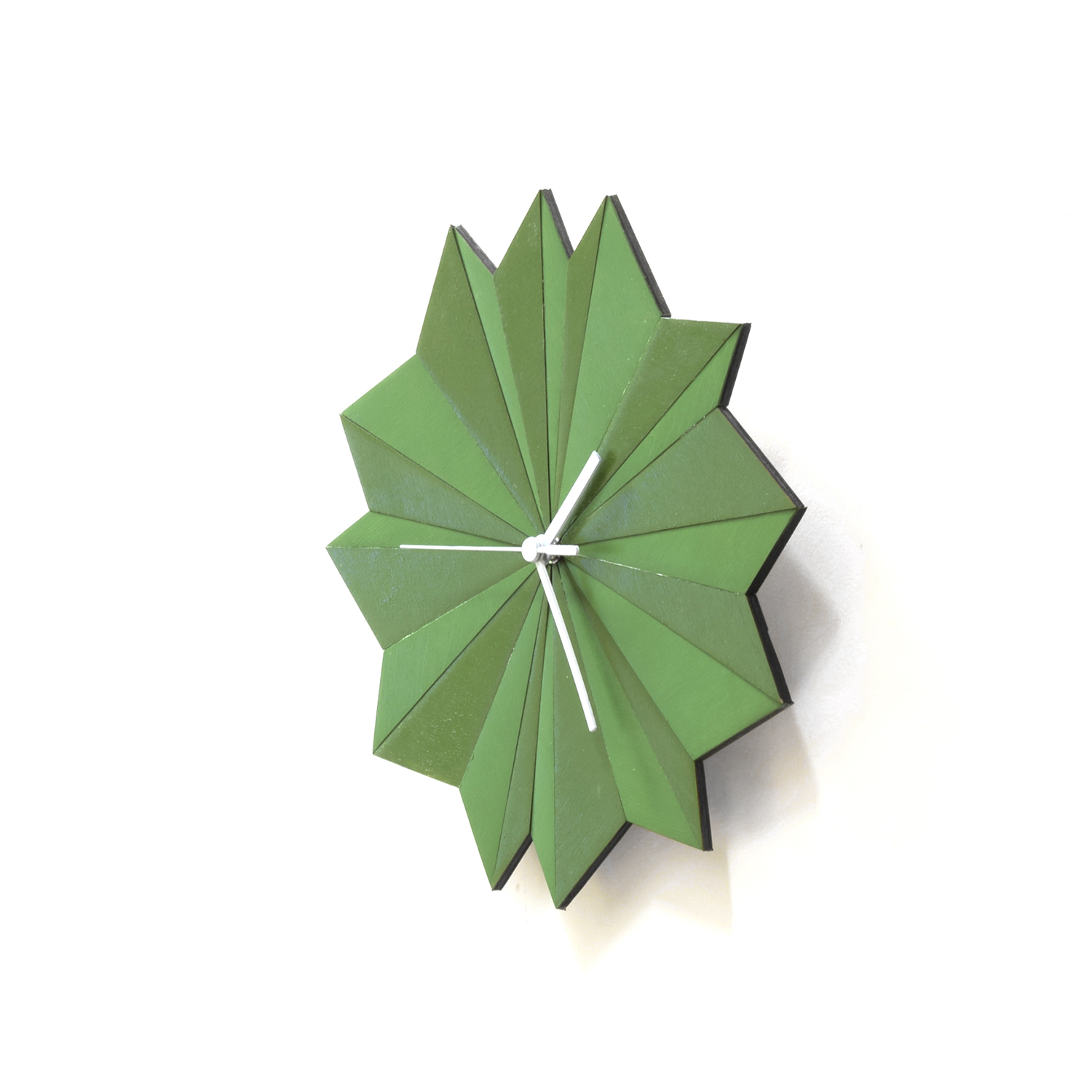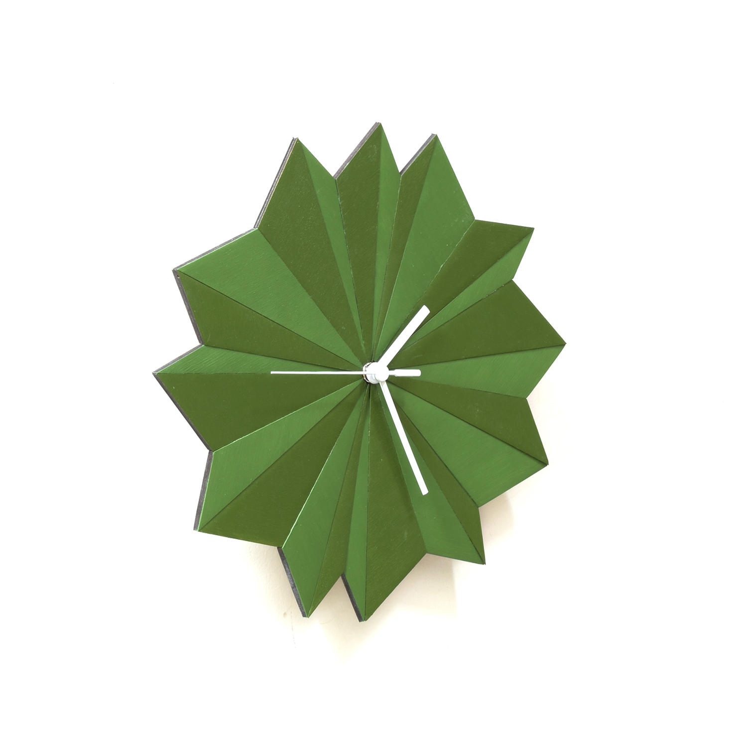 Origami Green - unique bicolor wooden wall clock with 2 shades of green