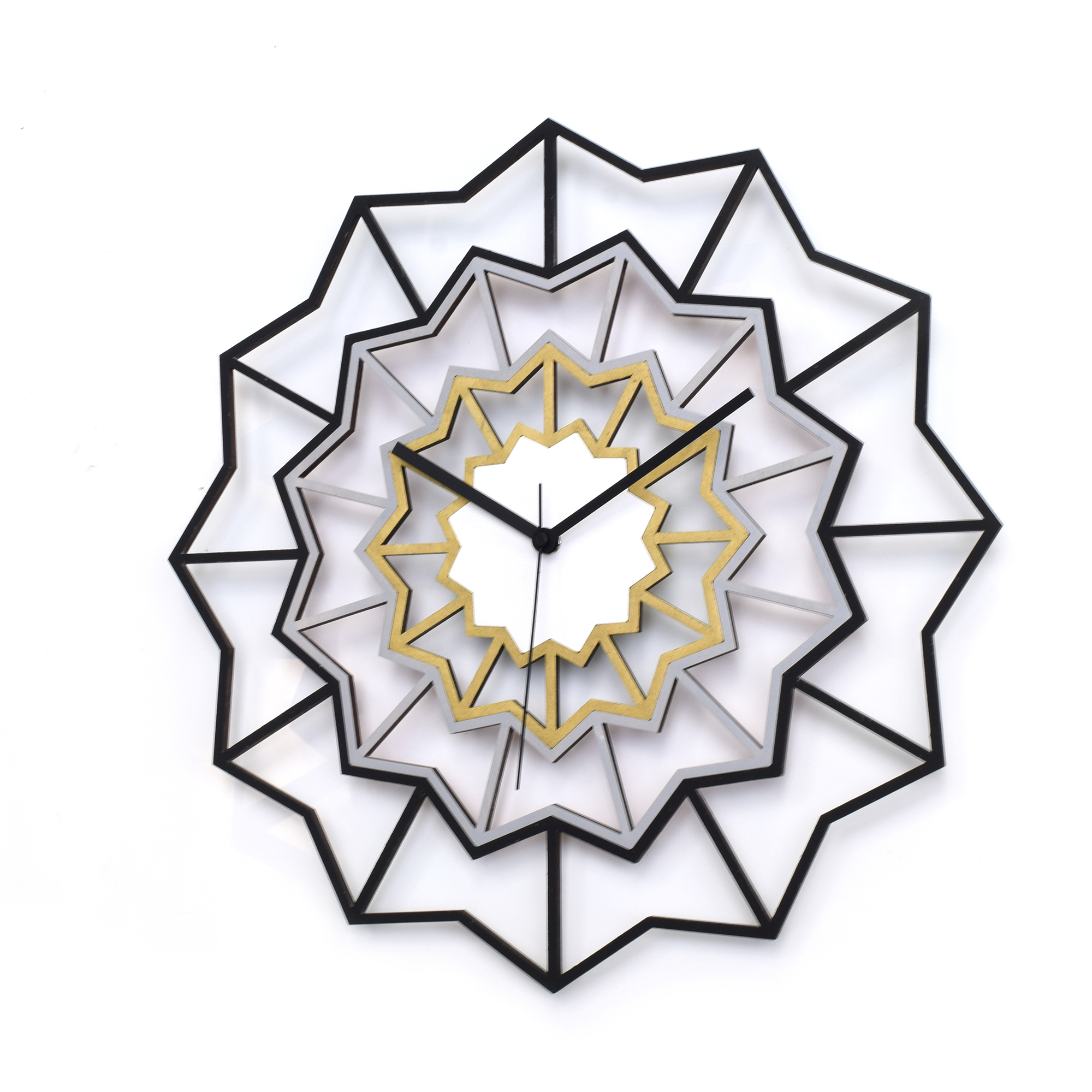 The geometric shape of the wall clock is divided into 12 hexagons for each tone. The regular design makes the elegant clock simpler to read.