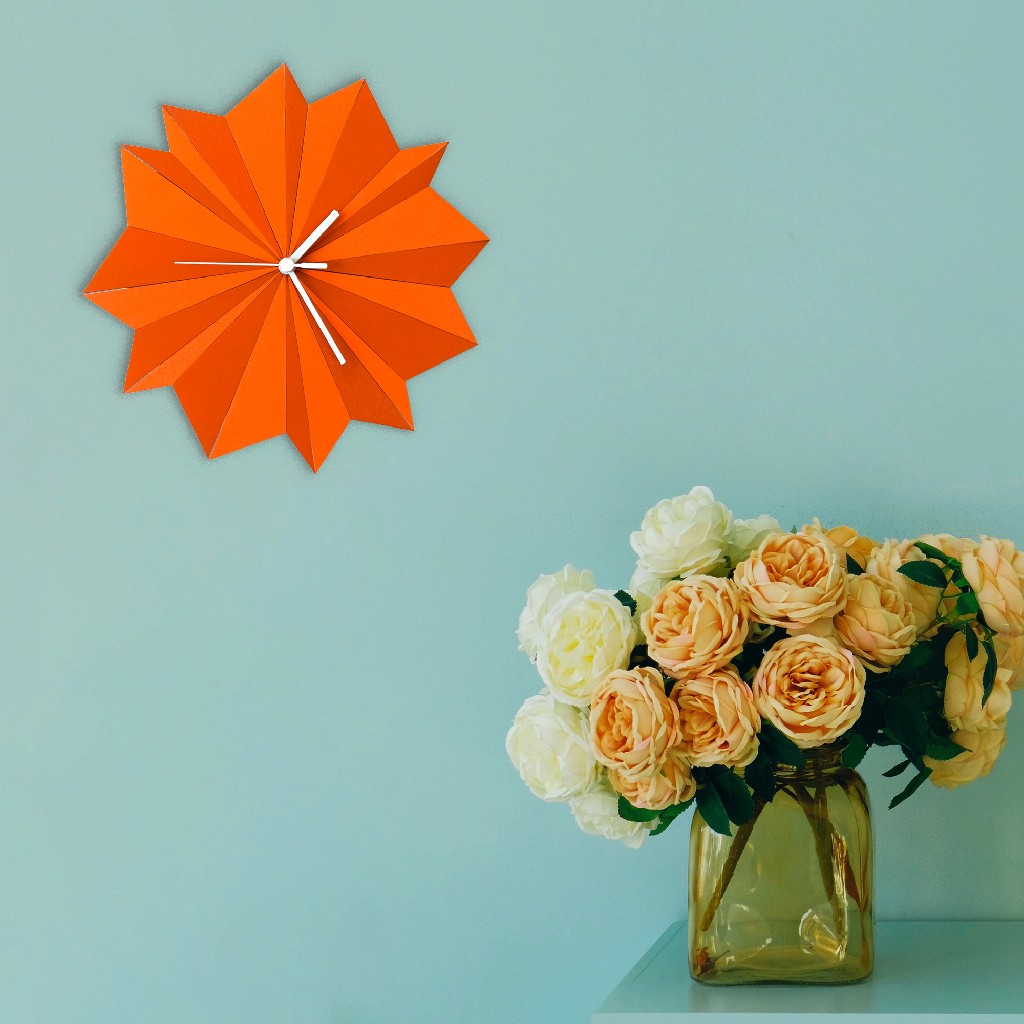 Origami Red - 11.5" (29cm) Orange wall clock, handmade burnt orange home decor