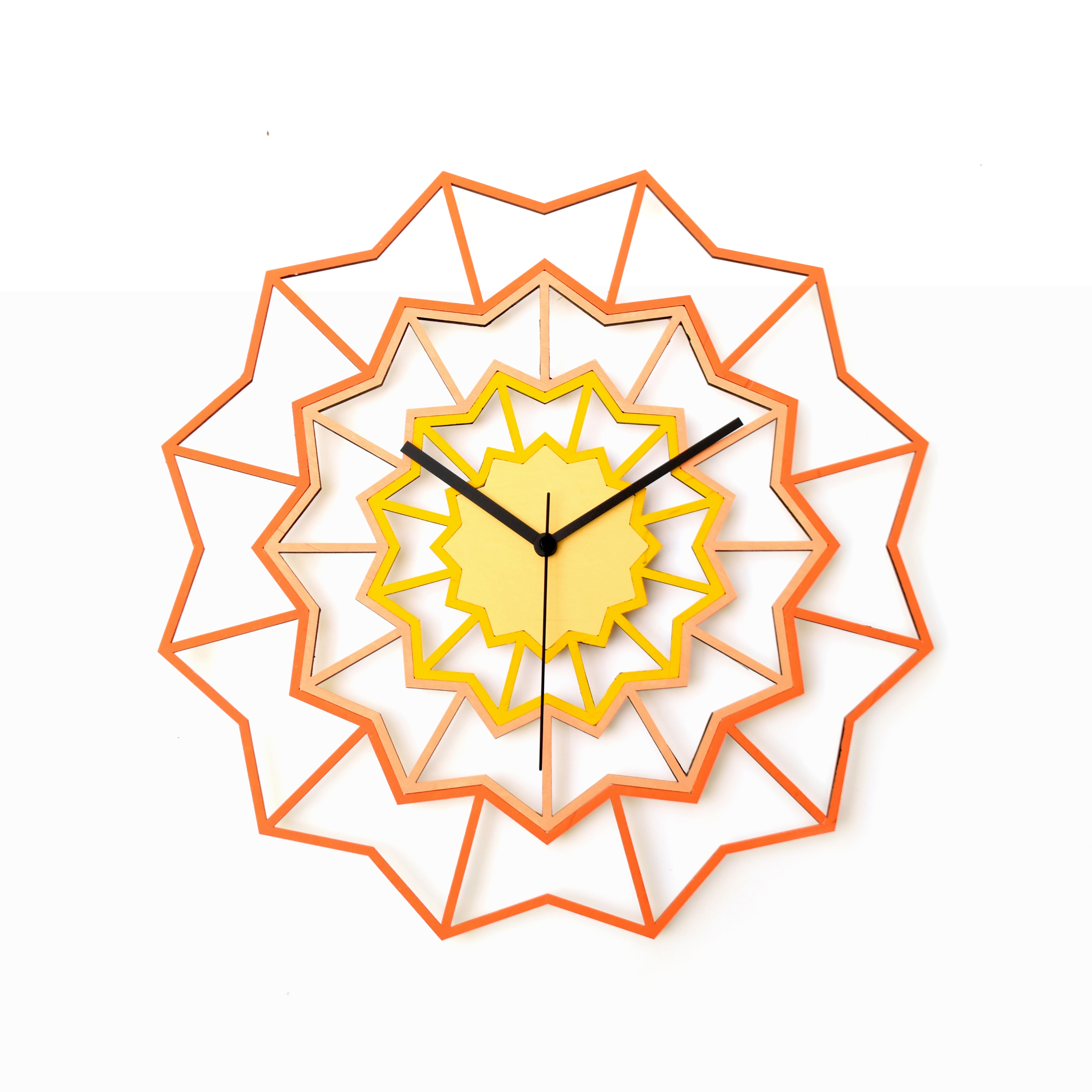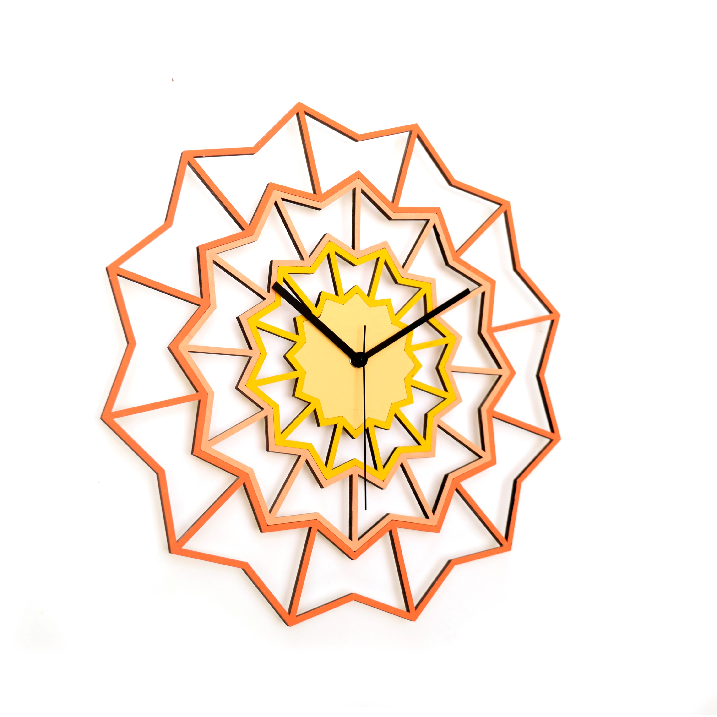- Manufacturing process: the dial's parts are laser cut from a 6mm birch plywood board and painted two colours of orange and two shades of yellow.