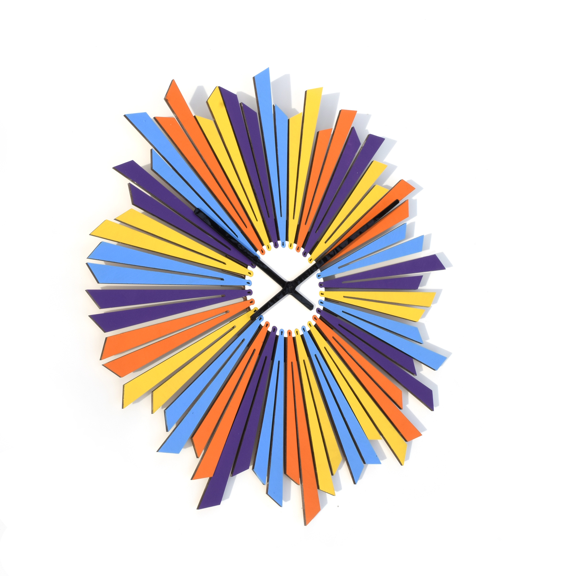 The Comet - Organic handmade wooden wall clock with multicolor dial