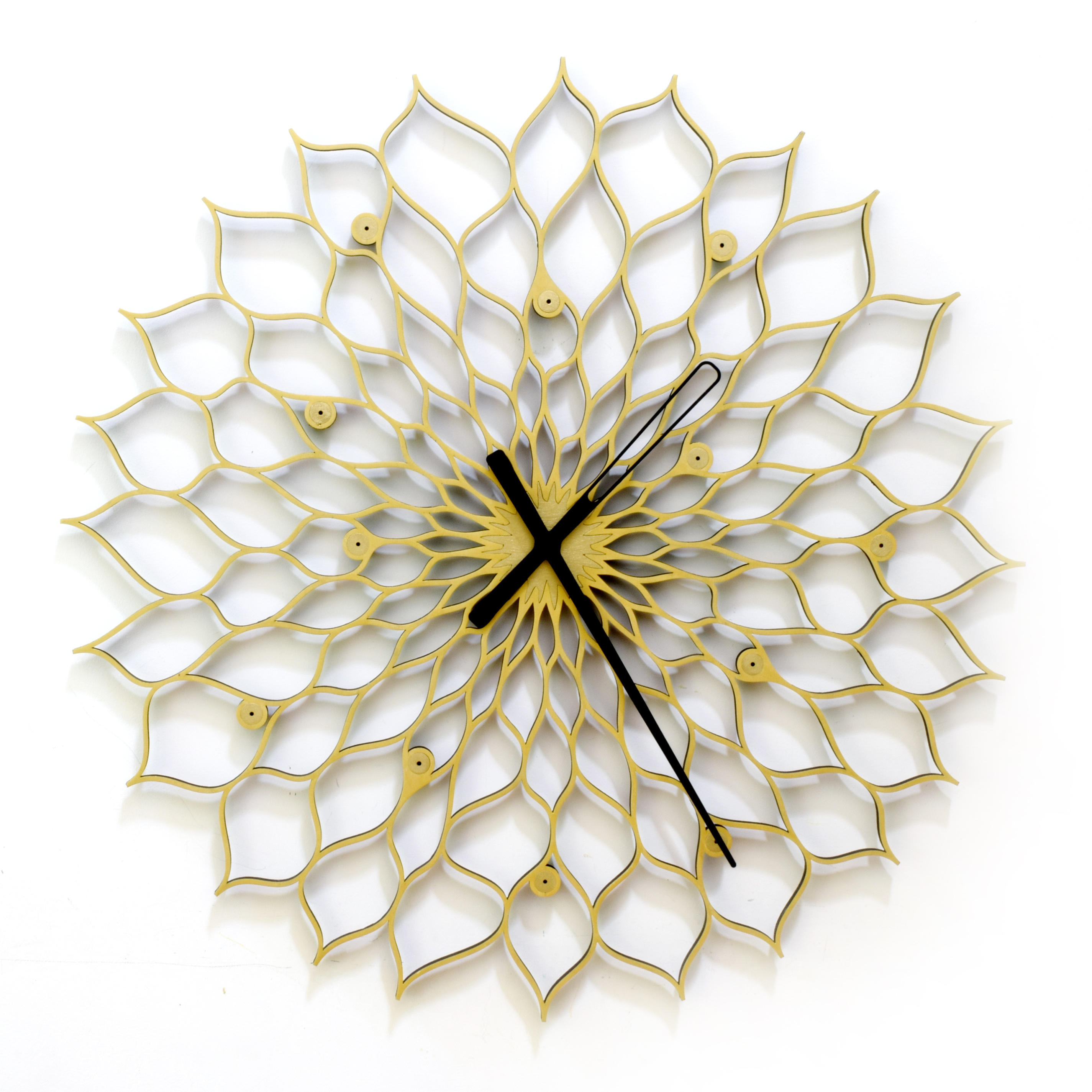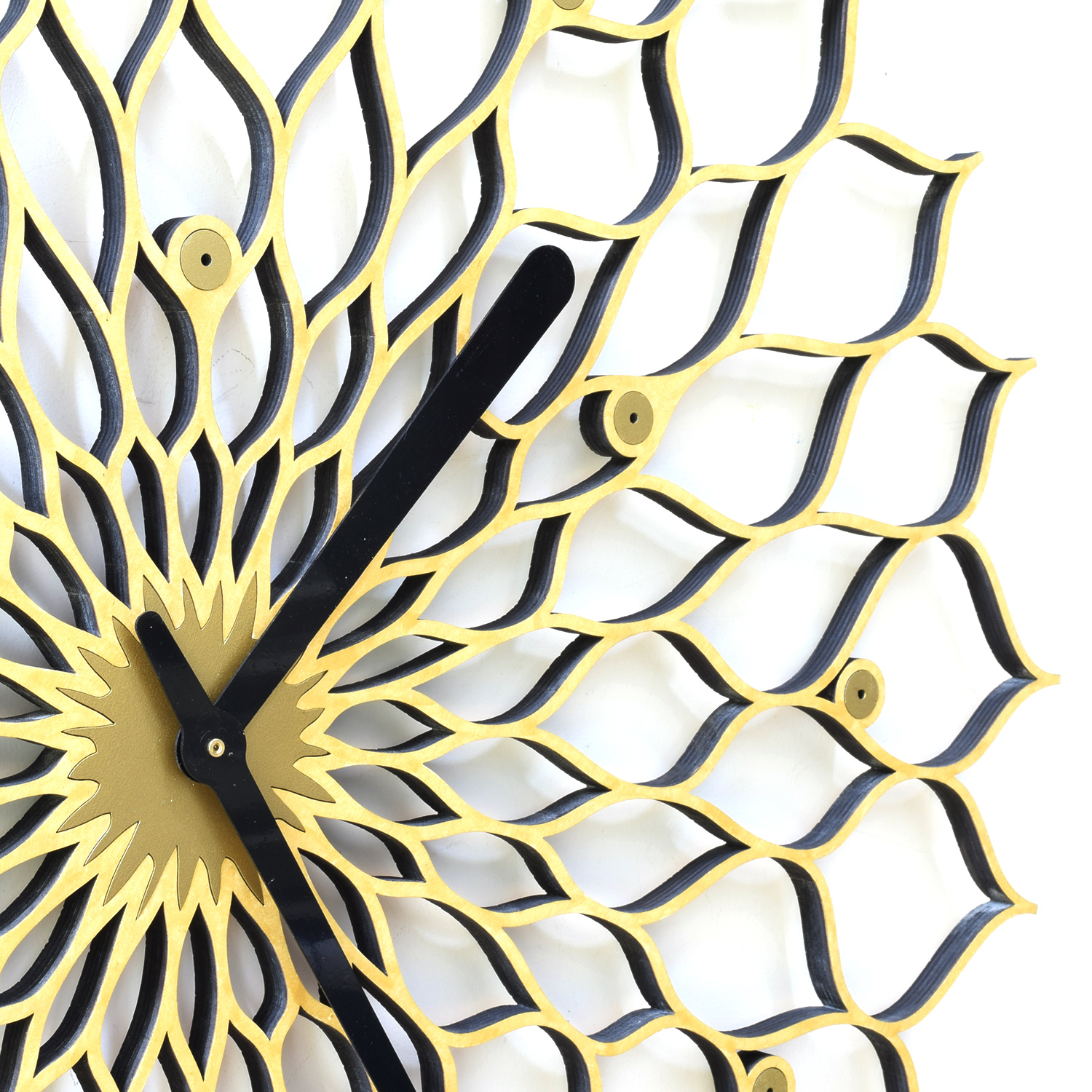 - Manufacturing process: the dial is laser cut from the plywood board. All surfaces are painted with 2 different shades of gold.
