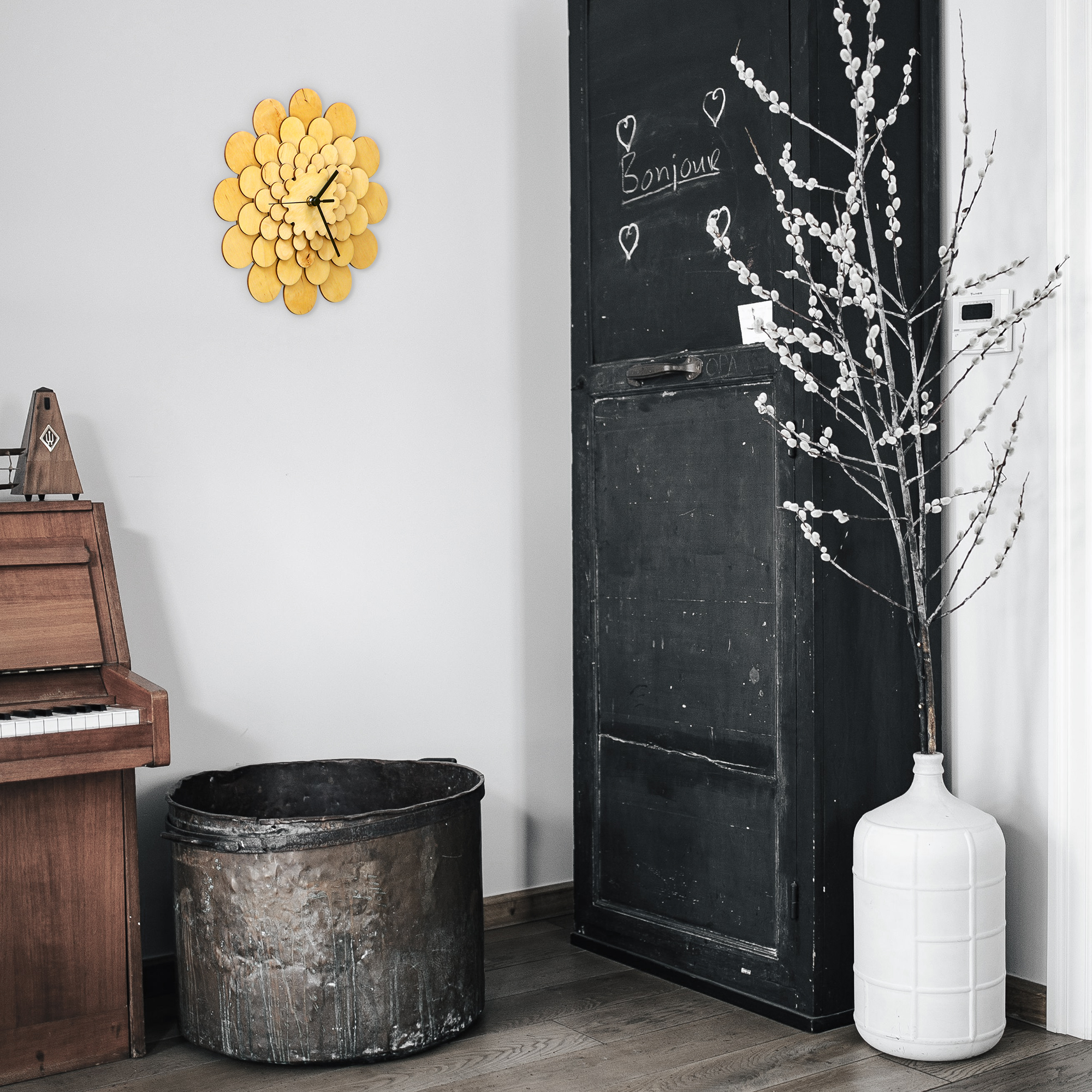 Dahlia - unique stylish natural wood wall clock, a piece of wall art